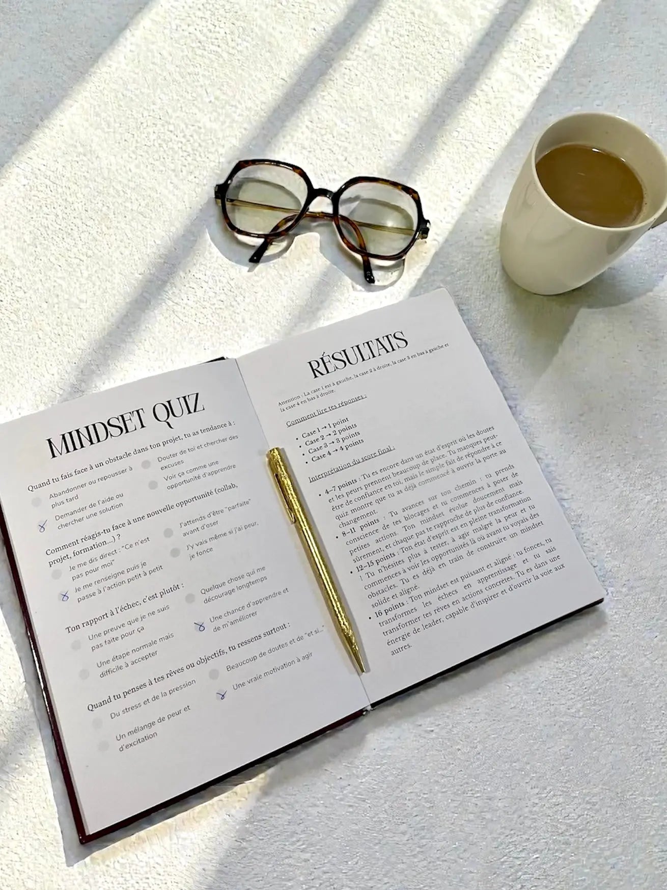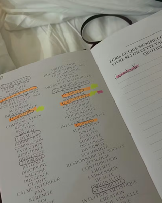 Reviens régulièrement sur tes pages pour observer ton évolution et ajuster ton état d’esprit.